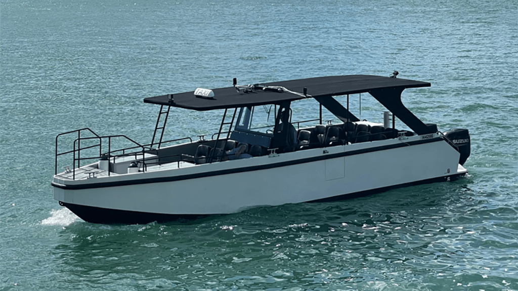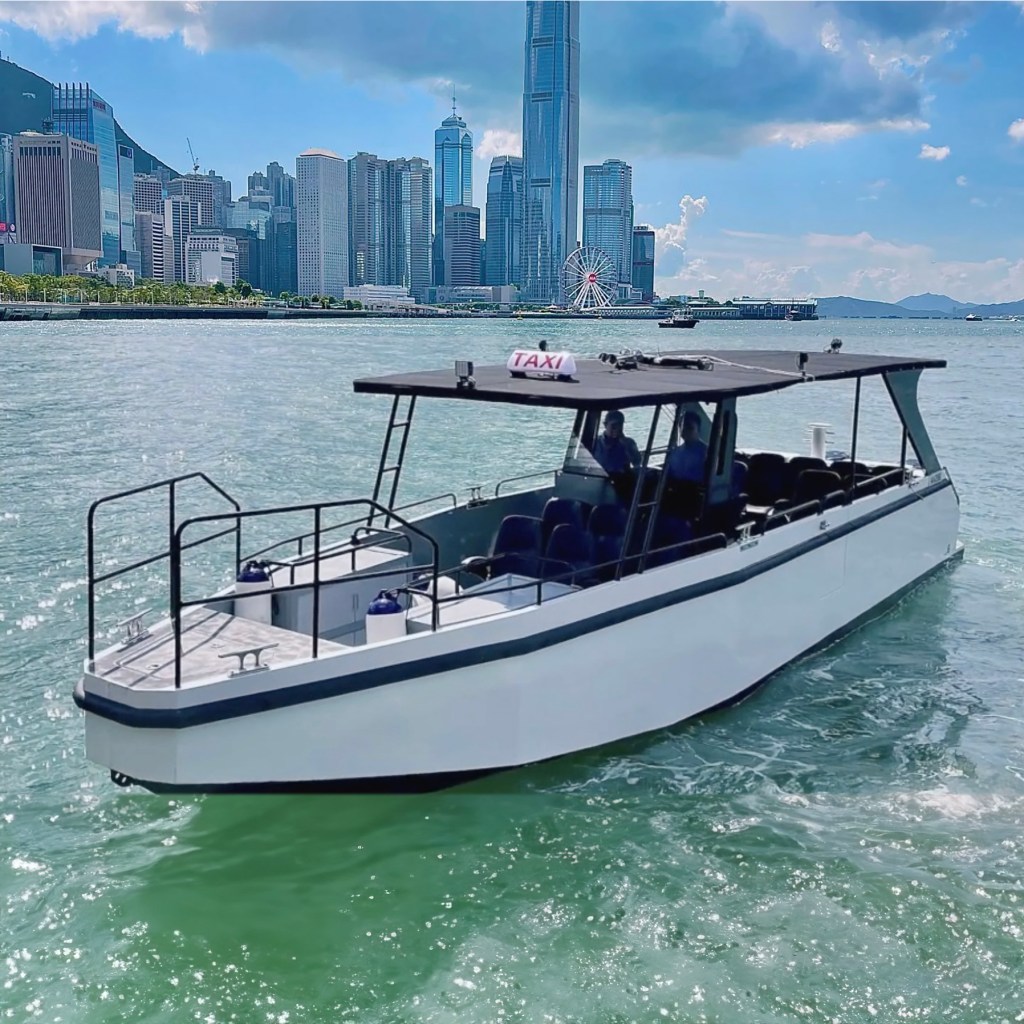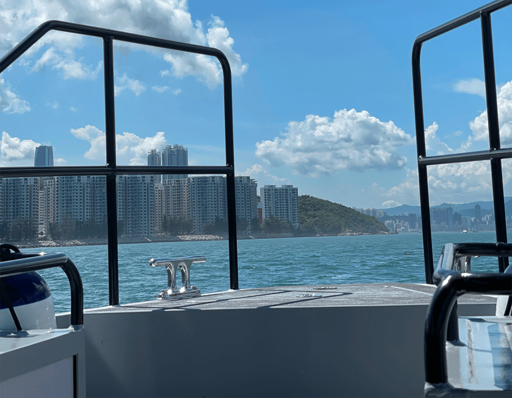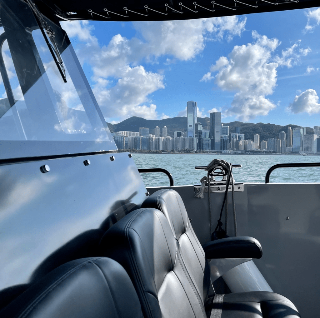 With its’ aluminum alloy, deep-V hull and twin 300 HP Suzuki outboards, this 38 ft launch will cruise at 22 knots like a dream and when reaching top speeds of 32 knots will hardly wake you up. Her deep, jet-black anthropomorphic seats will keep everybody comfortable and safe for the duration of the trip. And at those speeds, even Dai Long Wan is only an hour away from Central piers. Its shallow 2′ 3″ draft is perfect for getting you and your party really close to the beach. Lying in Aberdeen, she will collect from anywhere, and deliver you anywhere. Standard options include a sunset cruise on Victoria Harbour, a return journey to Po Toi island or Long Kei Wan.