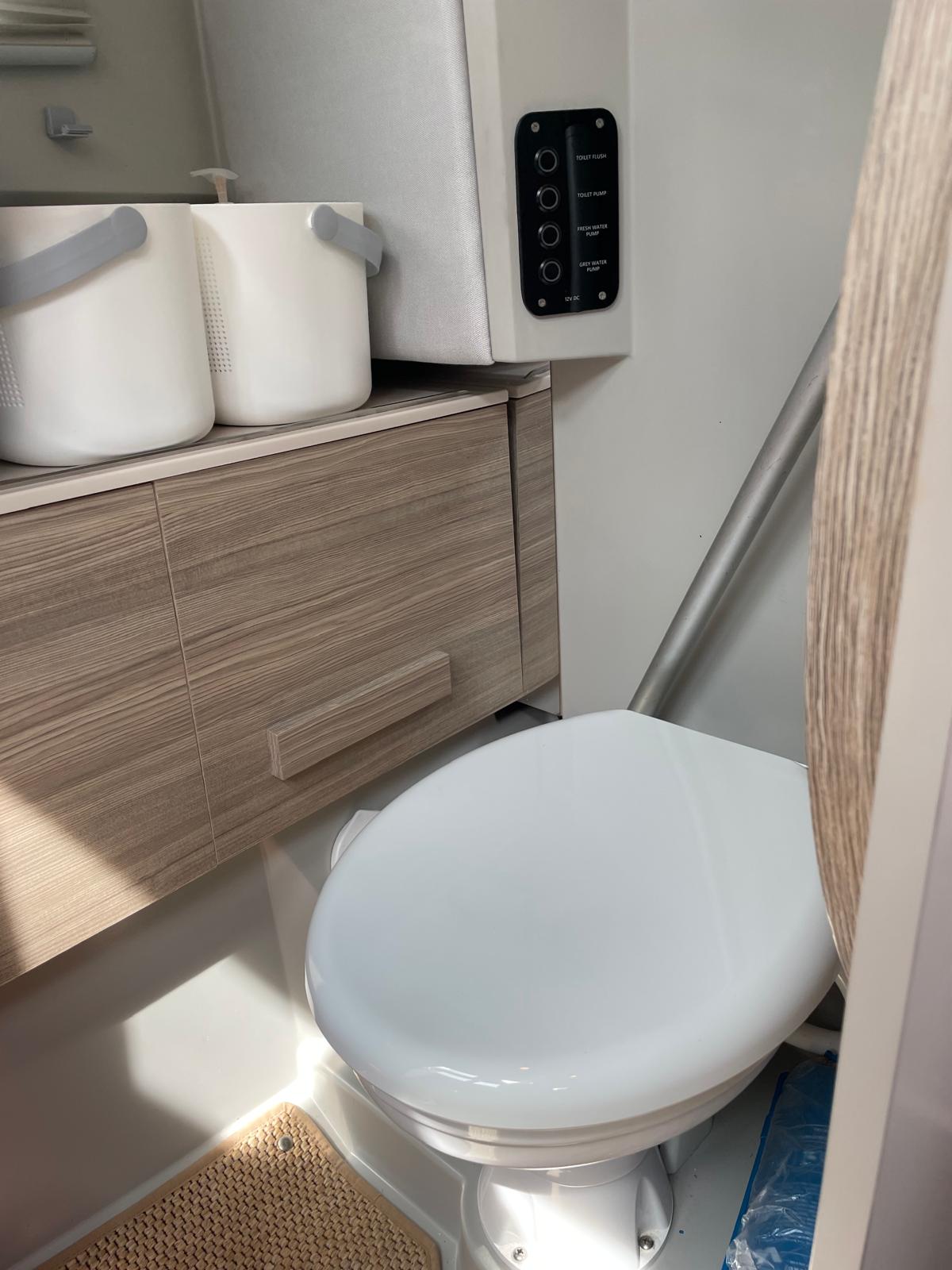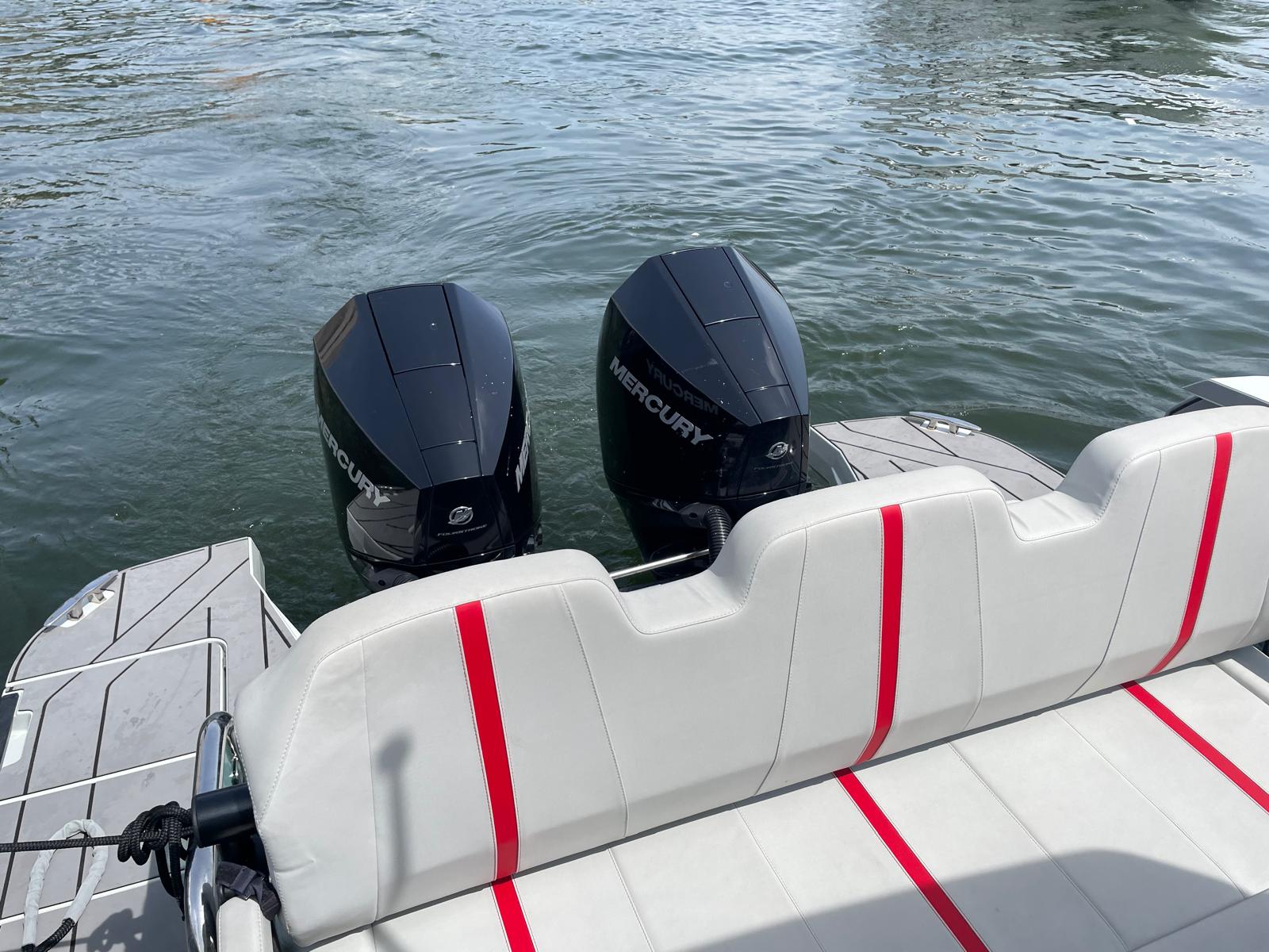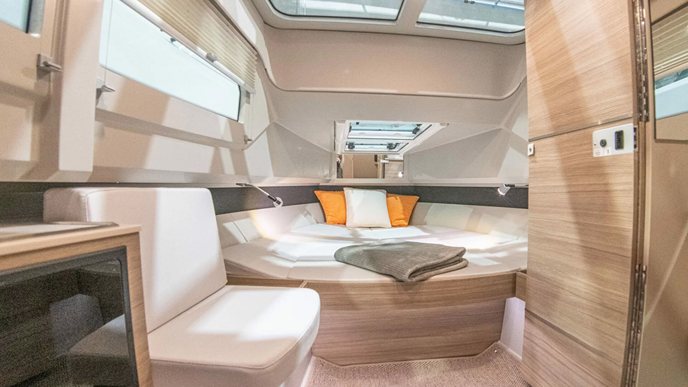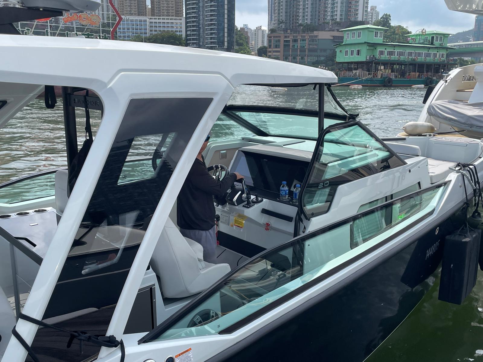 Everyting is in the name: VAMOS, Spanish for “let’s go!” This bestselling model from the famed Saxdor brand boasts two 300 HP Mercury outboard engines and speeds up to 50 knots. Cruising speed varies between 20 and 40 knots, depending on sea state. You can be in Tai Long Wan in less than an hour! Unless you want to hop around the south side, between the seafood restaurants and the best swimming spots, at a specially reduced rate. The socializing space is divided between: a full cabin for napping or spending the night, a well-equipped galley kitchen in the cockpit, a sitting area aft and a sundeck forward.