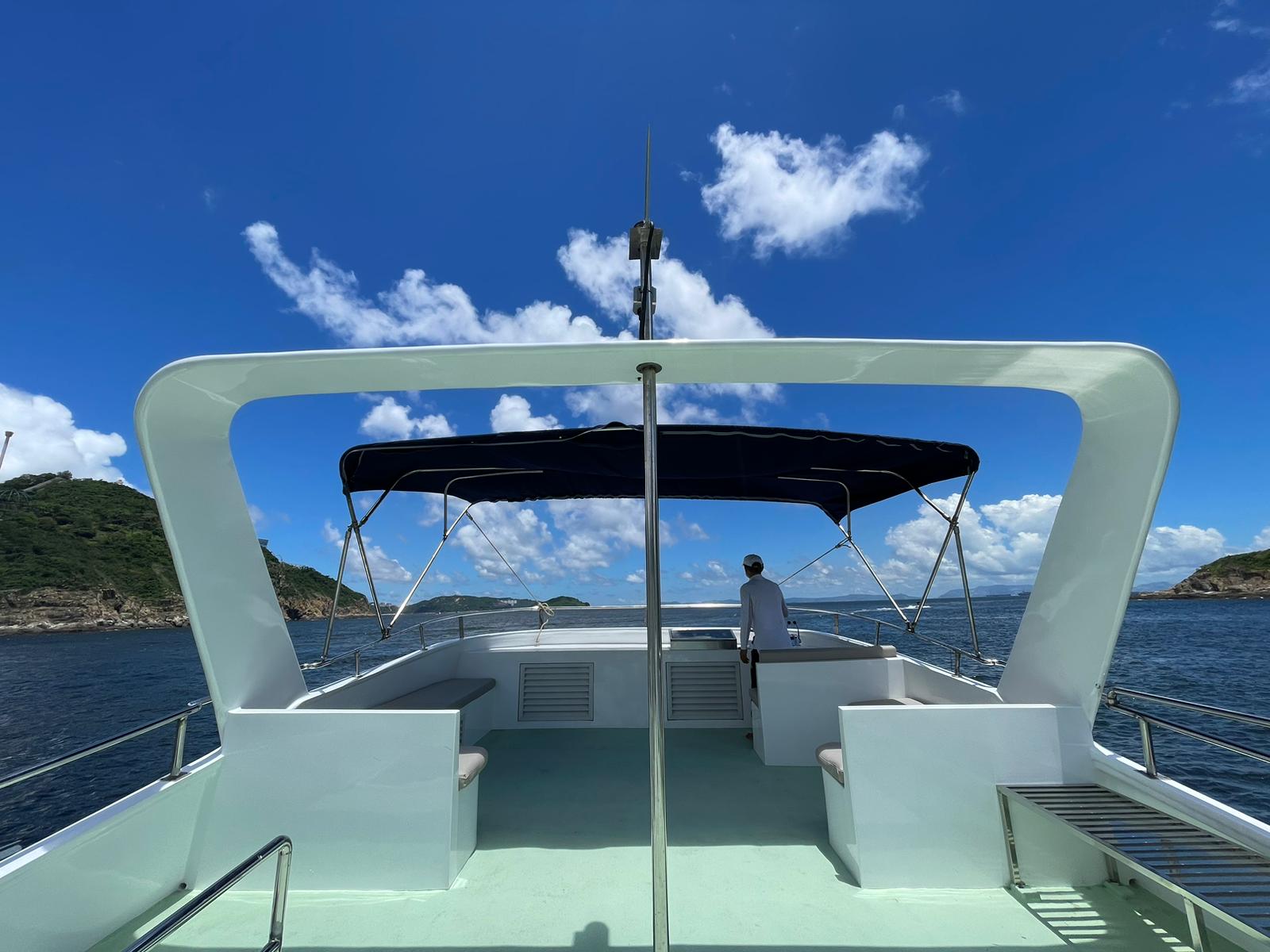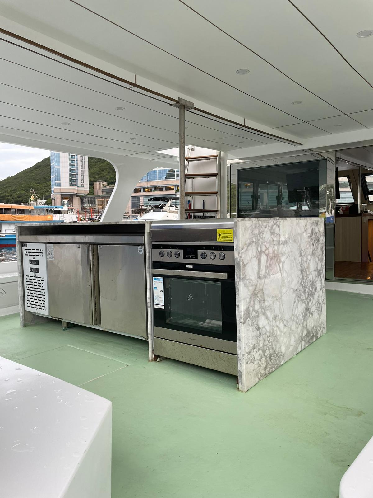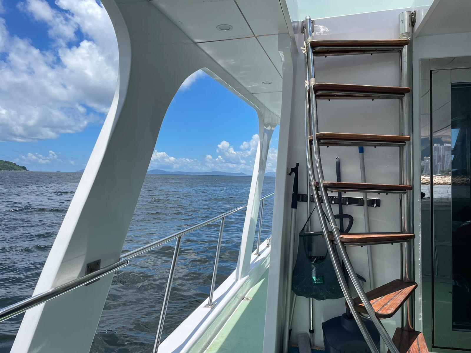 Price: Mon – Fri: 25 guests or less HK$7,700.00, extra guest +HK$330.00/person. Saturday & Sunday: 25 guests or less HK$9,600, additional guest +HK$330.00/person. Earliest boarding time, Aberdeen, Central Piers or Causeway Bay: 9 am. Latest return 11 pm. Prices include crew, fuel, ice, refrigerator and use of induction cooking rings and oven. Saikung $2,000 extra fuel charge. Floating mats are provided for free. Toys are charged an extra: kayak HKD 500, water pool HKD 2,000, slider HKD 2,500 or all the above HKD 3,000
